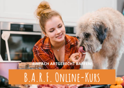 Mit dem BARF Online-Kurs von Dogtisch Academy lernen Teilnehmer alles was es braucht, um Hunde endlich artgerecht und fehlerfrei zu BARFEN oder auf BARF umzustellen. Als Hundeernährungsberaterin führe ich Teilnehmer Schritt-für-Schritt durch die Basis der Rohfütterung – individuell auf jeden Hund abgestimmt.